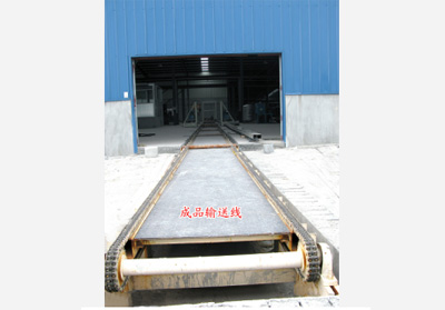 在加气混凝土中,输送链用于包装工段,主要是输送成品加气砖进行打包。